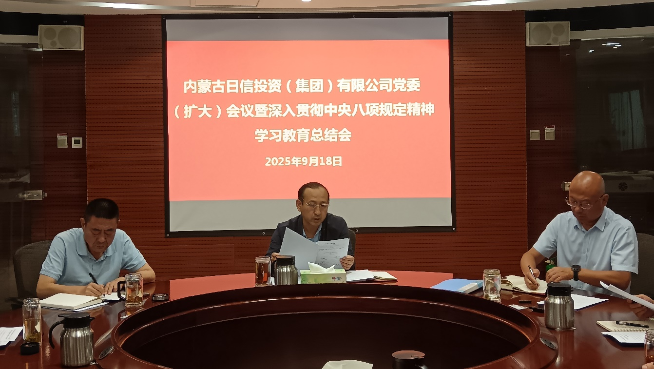 9月18日上午,日信集团党委书记郝玉主持召开党委(扩大)会暨深入贯彻中央八项规定精神学习教育总结会,传达《关于转发的通知》,总结集团深入贯彻中央八项规定精神学习教育开展情况。